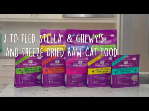 A quick tutorial on how to feed Stella & Chewy’s frozen and freeze dried raw cat food. Our raw cat food offers a complete and balanced meal containing 98% premium animal proteins like wild-caught salmon and cage-free chicken. To learn more on our frozen raw cat food: or freeze dried raw cat food: